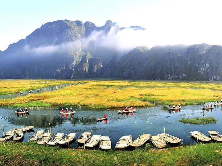 The Van Long Wetlands is a mysterious marshland refuge located in the shadow of a sizable limestone mountain. The reserve is a haven for a broad range of feathered friends and is very well-liked by bird watchers. To see the rural scenery and get a closer look at this peaceful environment, schedule a boat tour.
